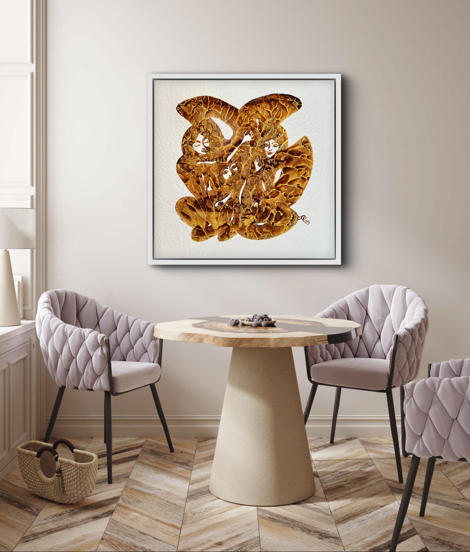 Jenseits seiner visuellen Anziehungskraft strahlt "Auretta" eine subtile Eleganz aus, die jeden Raum bereichert. Ob in Büros, Praxen oder Lounge, dieses Werk verströmt Ruhe und Inspiration.
